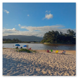 A Barra da Ferrugem, localizada em Garopaba, SC, é um verdadeiro refúgio para quem procura paz e belezas naturais. Com sua faixa de areia clara e mar de águas calmas, é perfeita para famílias e aqueles que desejam desfrutar de um dia tranquilo à beira-mar. A união do rio com o mar cria um cenário encantador, ideal para banhos refrescantes e momentos de contemplação da natureza. É um local onde a simplicidade e a serenidade reinam, proporcionando uma experiência única de relaxamento em meio à natureza.
